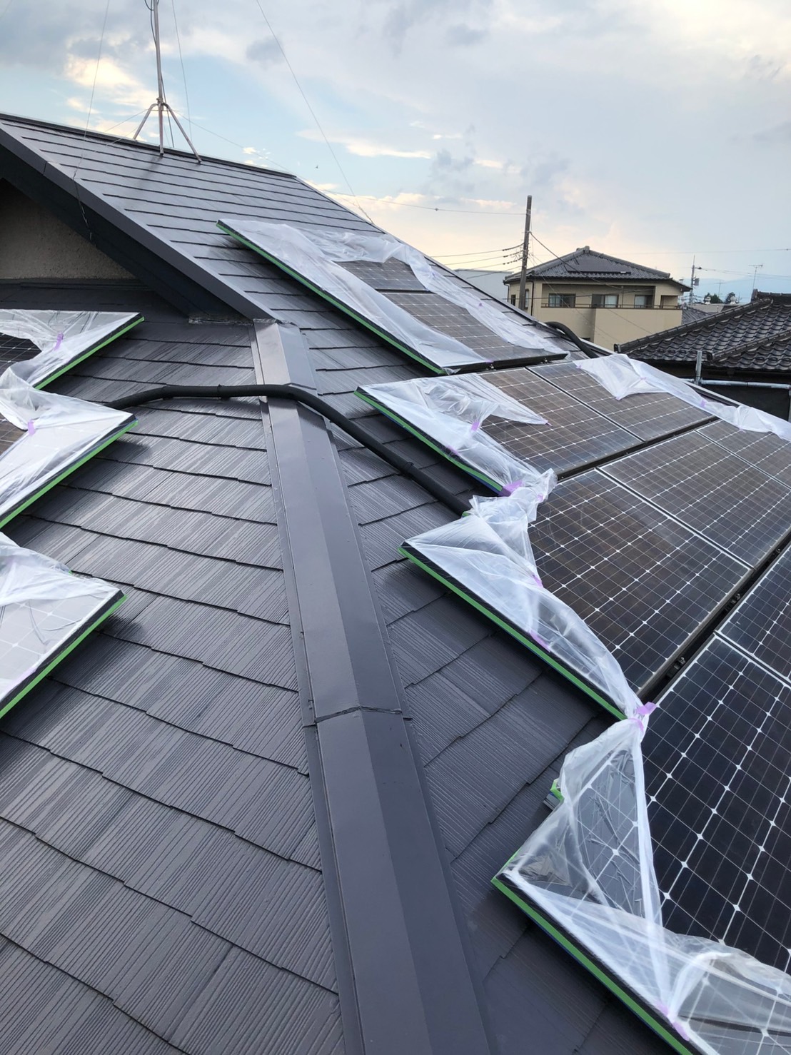 ソーラーパネルは、しっかり保護し丁寧に施工いたします。